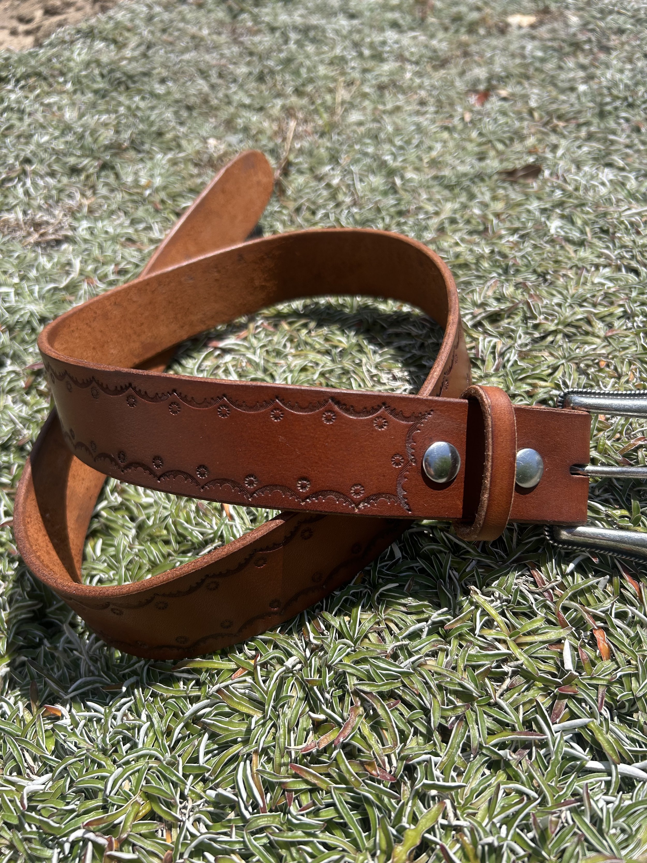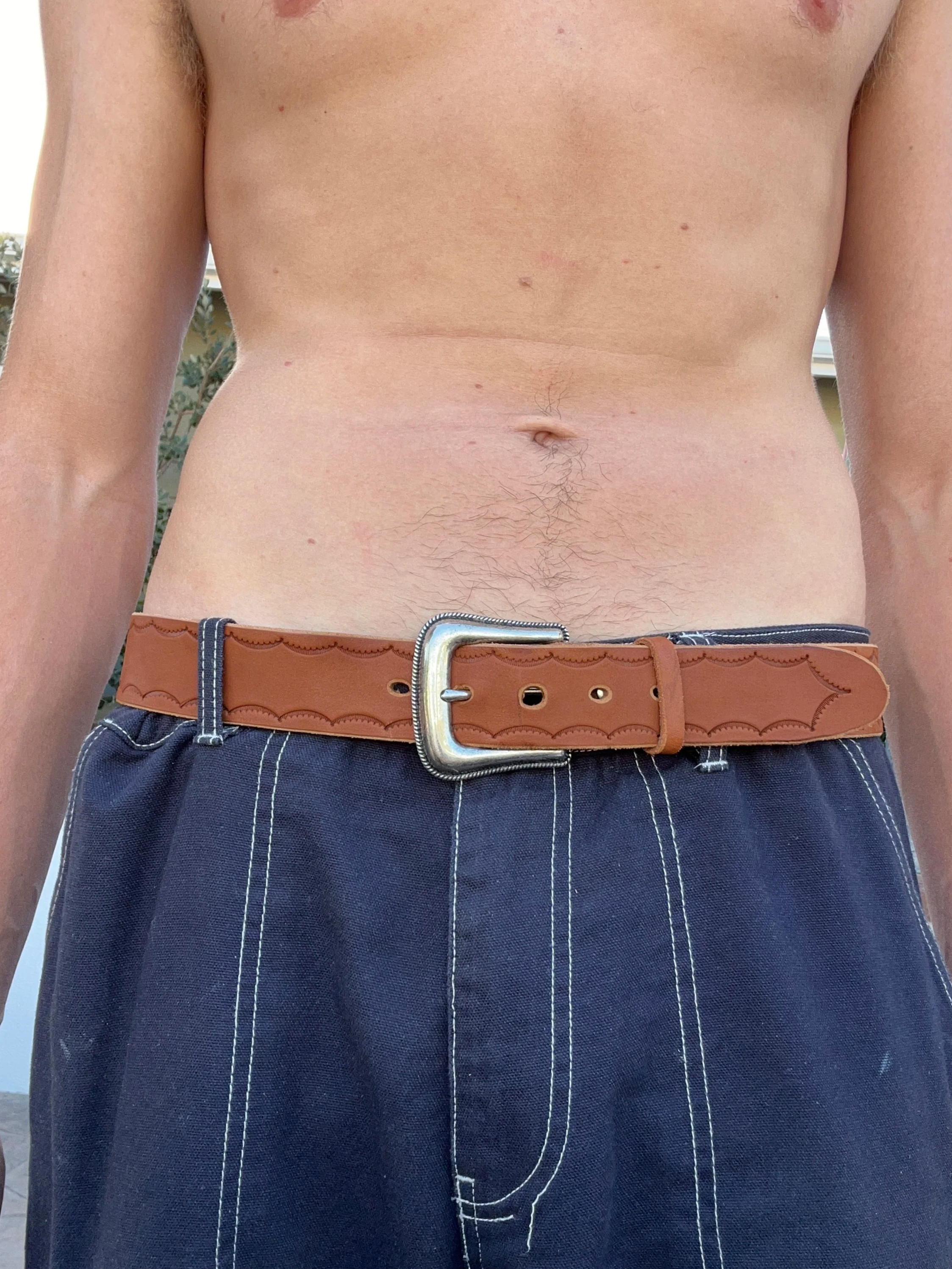 Order your waist size (5 holes punched, the middle hole will be what you order)